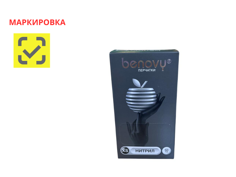 Перчатки медицинские диагностические (смотровые) одноразовые нестерильные "Benovy" нитриловые текстурированные на пальцах, неопудренные с однократной хлоринацией (манжета с валиком), цвет черный, вес 3 г., размер XS, 50 пар/упаковка, Малайзия ("Топ Глав Сдн. Бхд.") M211K1