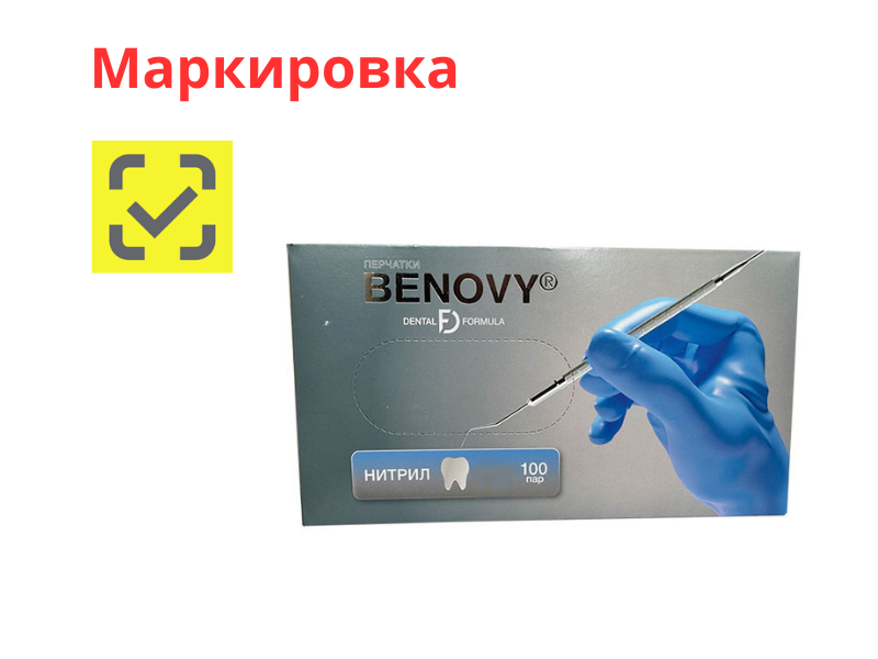 Перчатки медицинские диагностические (смотровые) одноразовые нестерильные "Benovy Dental Formula" нитриловые текстурированные на пальцах, неопудренные с однократной хлоринацией (манжета с валиком), цвет голубой, размер L, 100 пар/упаковка, Китай