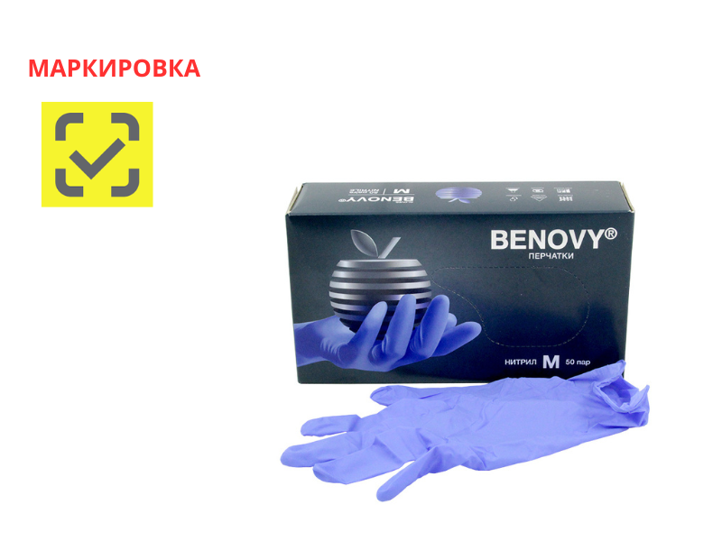 Перчатки медицинские диагностические (смотровые) одноразовые нестерильные "Benovy" нитриловые текстурированные на пальцах, однократной хлоринации, сиренево-голубые, размер M, 50 пар/упаковка, Китай ("Блю Сэйл Медикал Ко., Лтд.") M220K3