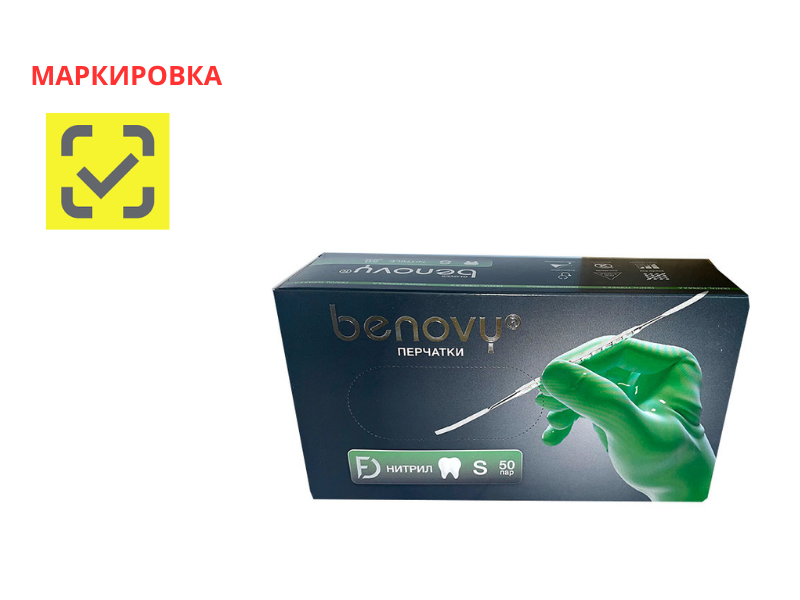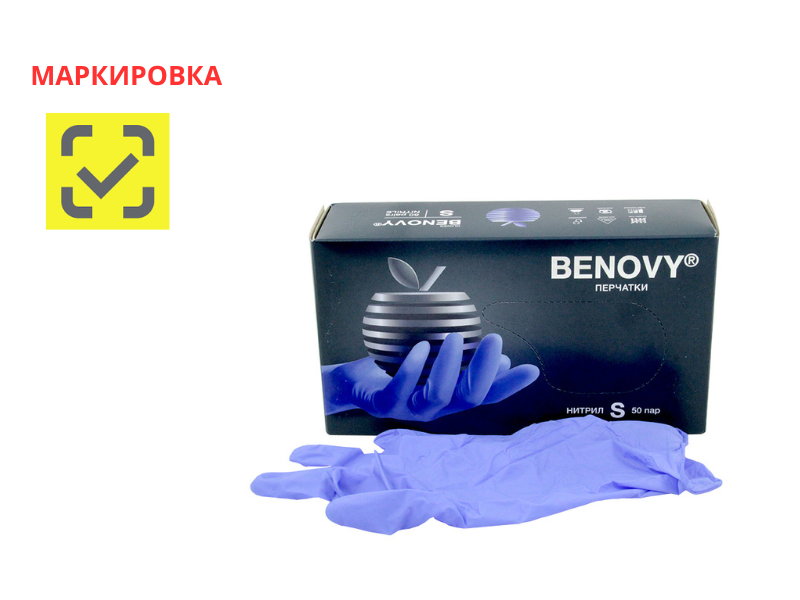 Перчатки медицинские диагностические (смотровые) одноразовые нестерильные "Benovy" нитриловые текстурированные на пальцах, однократной хлоринации, черные, размер S, 50 пар/упаковка, Китай ("Блю Сэйл Медикал Ко., Лтд.") M225K2