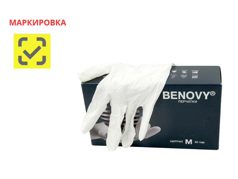 Перчатки медицинские диагностические (смотровые) одноразовые нестерильные "Benovy" нитриловые текстурированные на пальцах, неопудренные, белые, размер M, 50 пар/упаковка, Китай ("Блю Сэйл Медикал Ко., Лтд.") M221K3