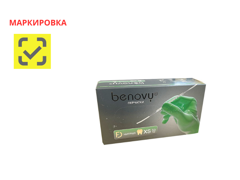 Перчатки Benovy смотровые нитриловые неопудренные нестерильные (текстурированные), зеленые, плотность 4,0 грамма, размер XS, 50 пар/упаковка, Малайзия (TG Medical Sdn.Bhd.) M205K1