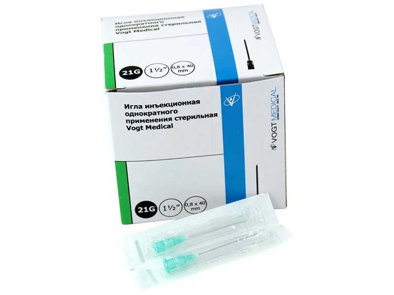 Игла инъекционная 21G*1 1/2 (0,8*40 мм) однократного применения стерильная Vogt Medical ("Луер"), 100 шт/упаковка, Германия (Vogt Medical Vertrieb GmbH) 1310321