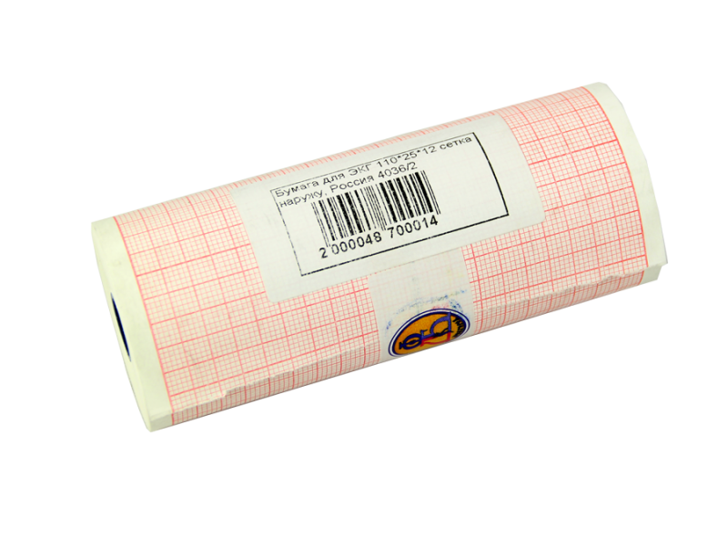 Бумага для ЭКГ (лента диаграммная из термобумаги) 110*25*12 сетка наружу, Россия 4036/2