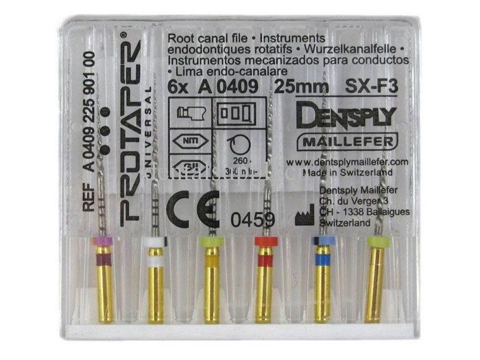 Набор инструментов стоматологических эндодонтических Protaper Universal машинных, размер SX-F3, 6 шт/упаковка, Швейцария (Maillefer Instruments Holding Sarl (Dentsply Maillefer)) A040922590112