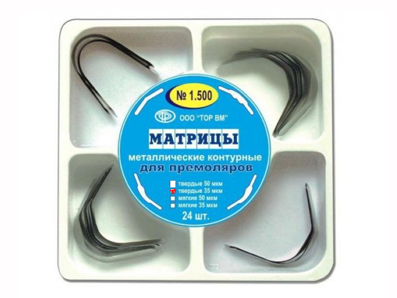 Матрицы металлические контурные, толщина 35 мкм (универсальные 4-х форм, для премоляров), 24 шт/набор, Россия (ООО "ТОР ВМ") 1.500