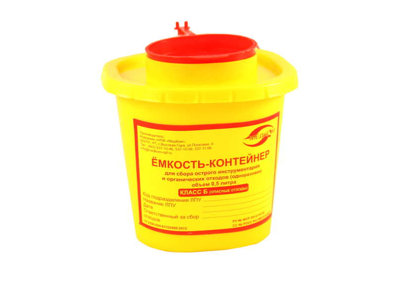 Контейнер одноразовый МК-01-"МедКом" (0,5 л) для сбора острого инструментария класса Б, Россия (НПФ "МедКом")