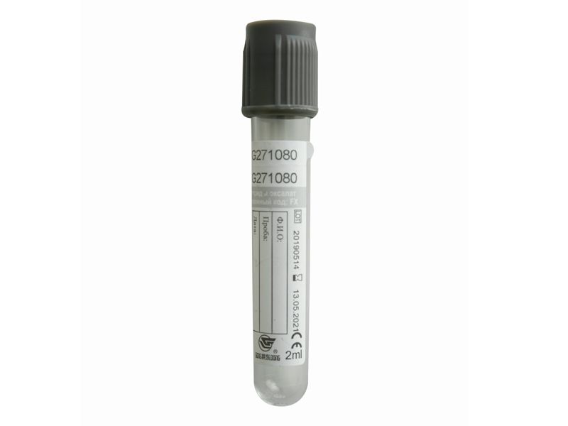 Наполнитель: Фторид натрия и оксалат калия (сухой наполнитель) Условия хранения: 4С-25С Рабочая температура (эксплуатации): 0С-37С Максимальное отклонение содержания вакуума: 10% Срок хранения: 2 года с даты изготовления Производитель: Чжецзян Гундун Медикл Текнолоджи Ко, Лтд. Описание: Пробирка изготовлена из ПЭТ. Пластиковая крышка сделана из полиэтилена (ПЭ). Пробка сделана из бутилкаучука.