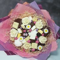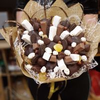 Крафт букет с шоколадными ингредиентами. Букет для настоящих сладкоежек. Состав: зефир в шоколаде, кит-кат, суфле, трюфель, палочки из птичьего молока со сгушенкой, мармелад,арахис в глазури, фундук. Вес 1 кг4 000 ₽Order in advance -