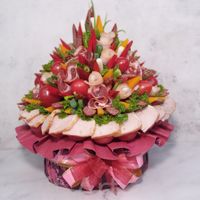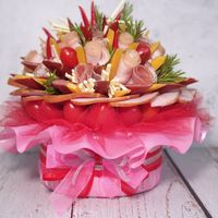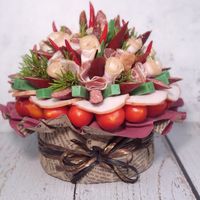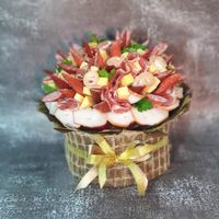 Сырно-мясной букет для девушки. Состав: охотничьи колбаски, бекон, свинина, помидоры, сыр 3-х видов, розмарин. Вес: 2 кг4 000 ₽Order in advance -