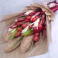 Букет для настоящих мужчин. Для тех кто не идет на компромисс и не ищет лёгких путей. Состав: охотничьи колбаски, немецкие колбаски, мини салями, сыр чечил, зеленый и красный острый перец, багет с сыром. Вес: 2 кг4 500 ₽Order in advance -