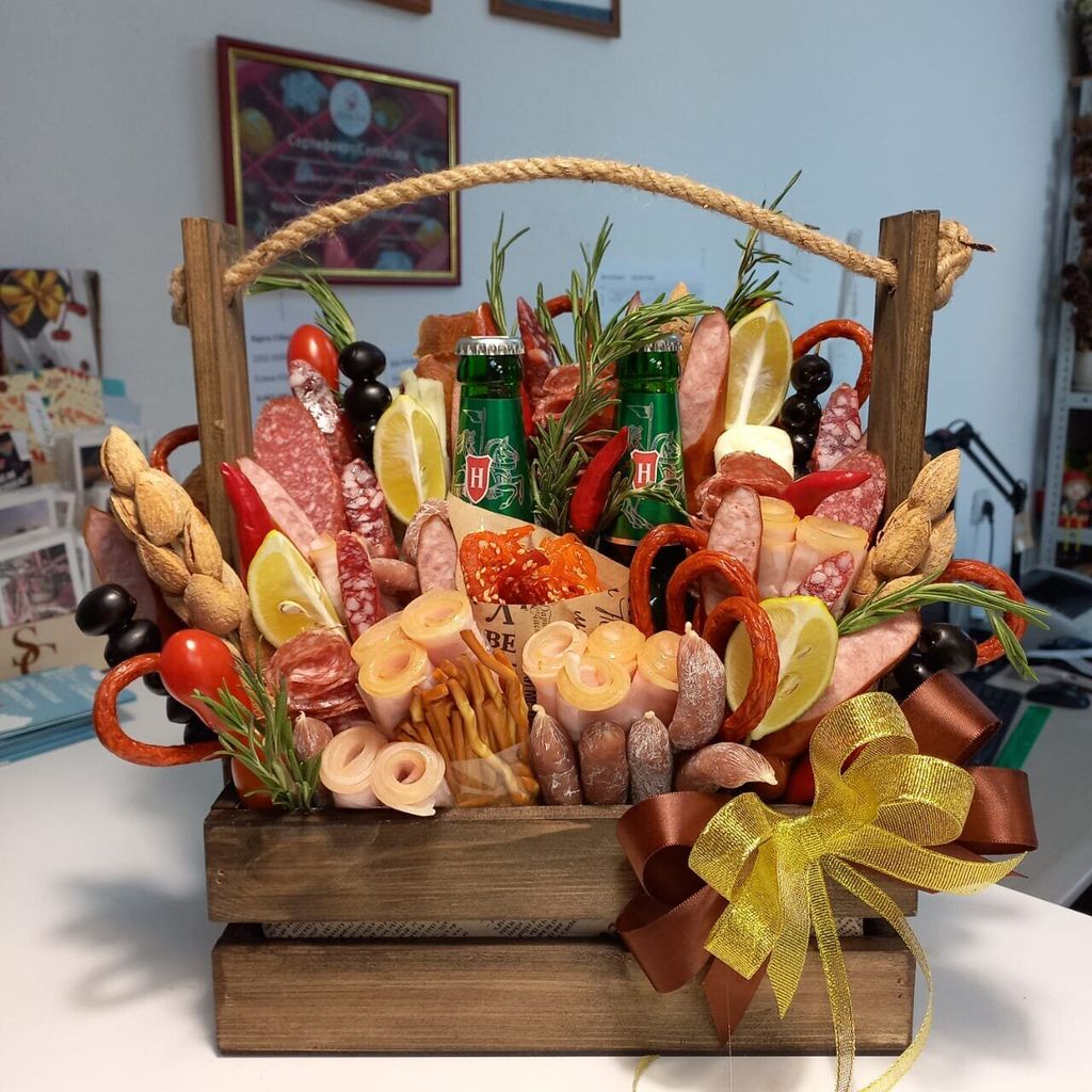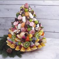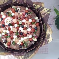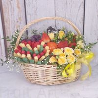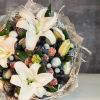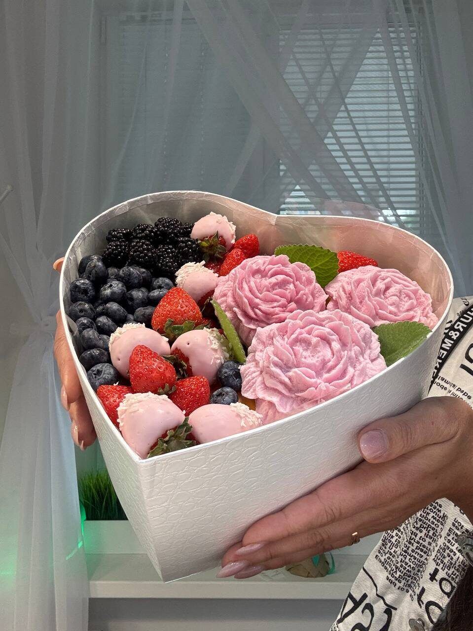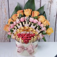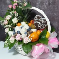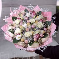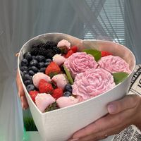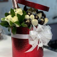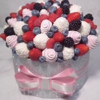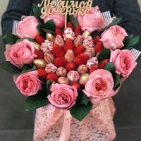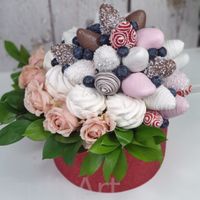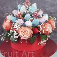 Букет в шляпной коробке из клубники в шоколаде с розами. Диаметр 30 см.10 000 ₽Order in advance -