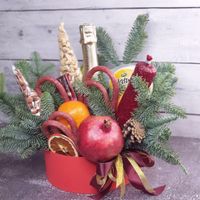 Букет в шляпной коробке с цветами, зефиром и клубникой в шоколаде. Диаметр 25 см.8 500 ₽Order in advance -