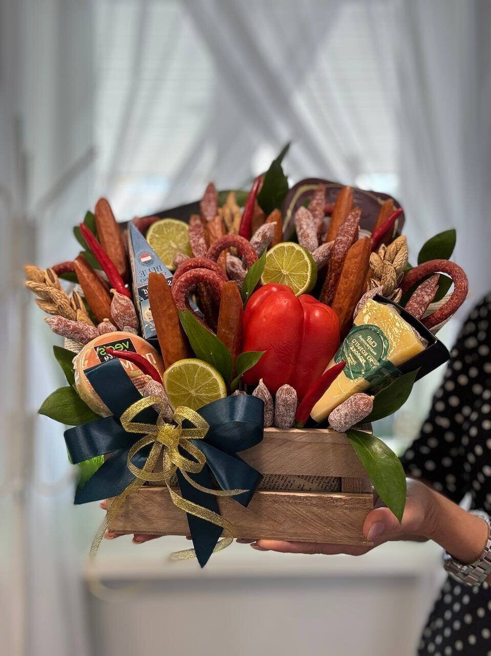 Фрукты, клубника в шоколаде, цветы. Надпись меняется по вашему желанию Размер12 000 ₽Order in advance -