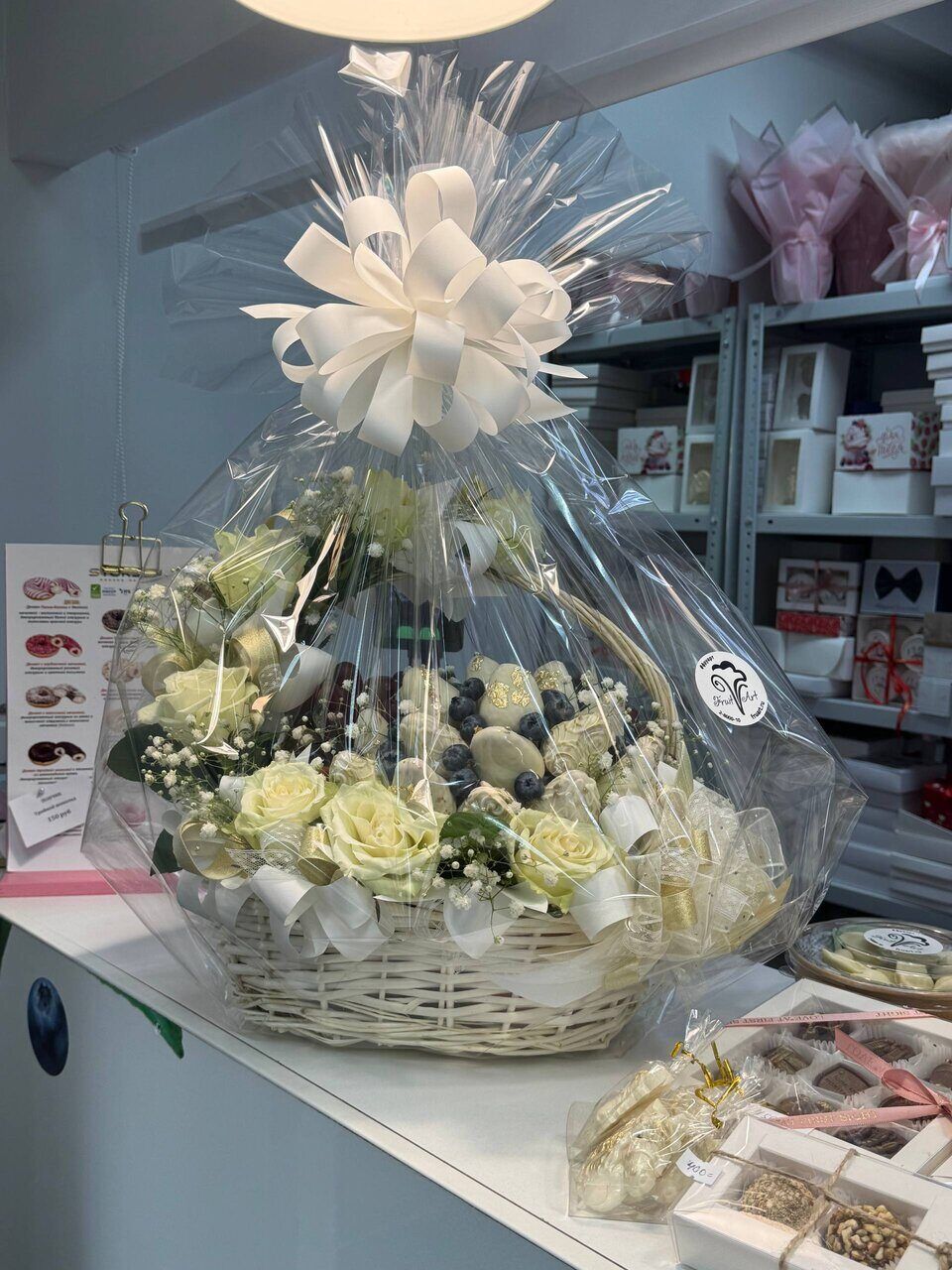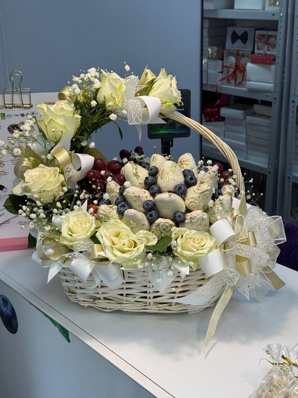 Корзина с клубникой и шоколадом