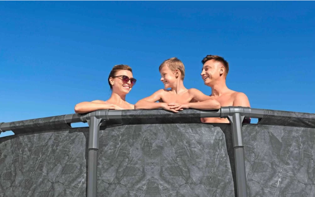 Чаша выполнена из высококачественного трехслойного ПВХ: два слоя плотного винила и один полиэстер для особой прочности. Облицовка бассейна с всесезонной защитой Polar-Shield обеспечивает морозоустойчивость бассейна. Эксклюзивный дизайн внешней поверхности чаши - темный мрамор идеально впишется на любом участке. Каркас металлический нержавеющий оцинкованный.