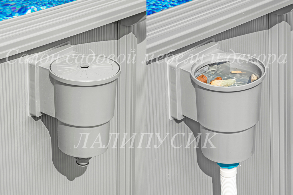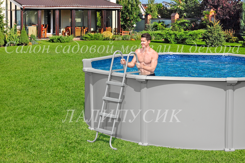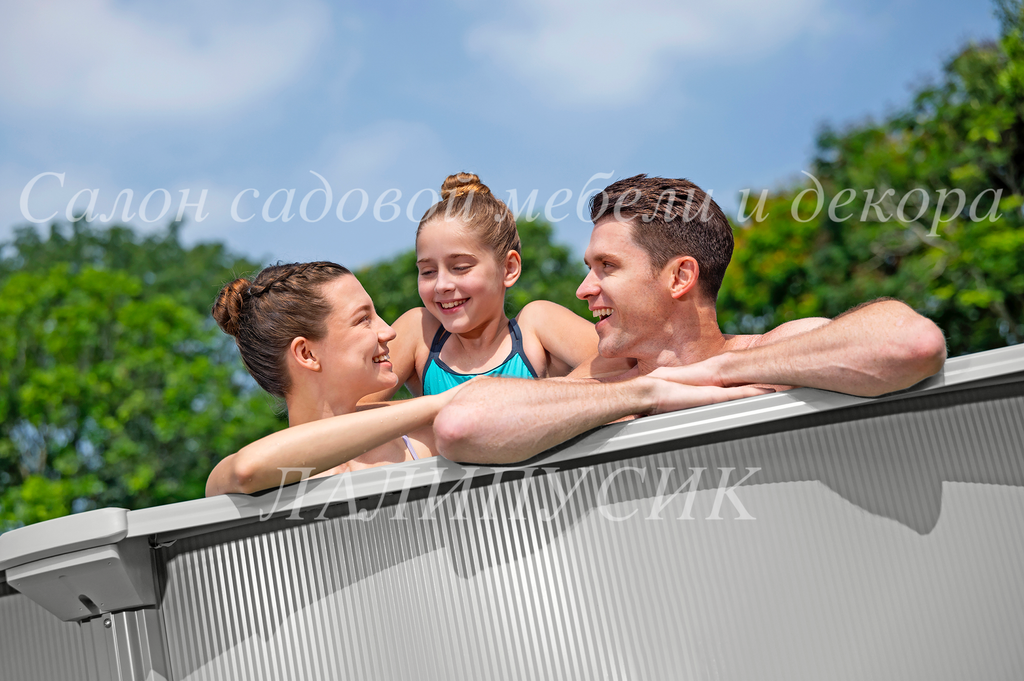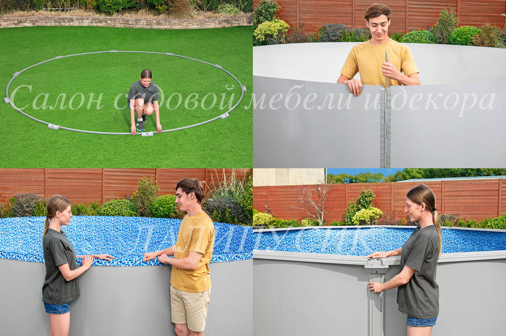 Стенки выполнены из цельных листов стали толщиной 0,4 мм, металлический каркас бассейна имеет защитное антикоррозионное покрытие. Бассейн может размещаться на открытом воздухе круглый год. Тем не менее обладает простой конструкцией — может быть легко разобран и собран заново. Время сборки и подключения бассейна не более 2-3 часов.