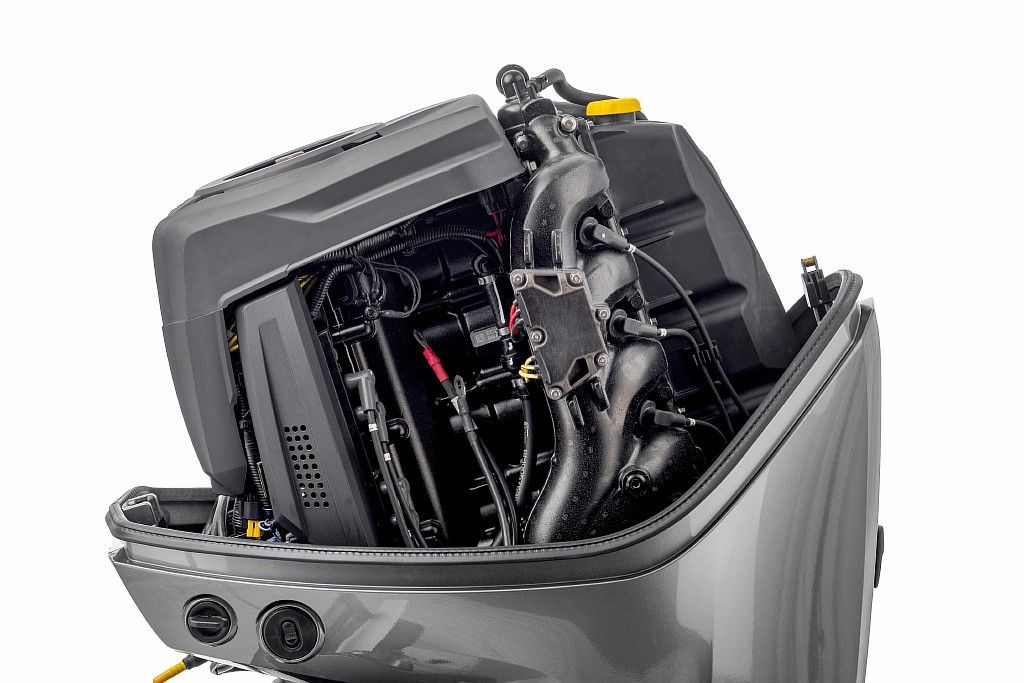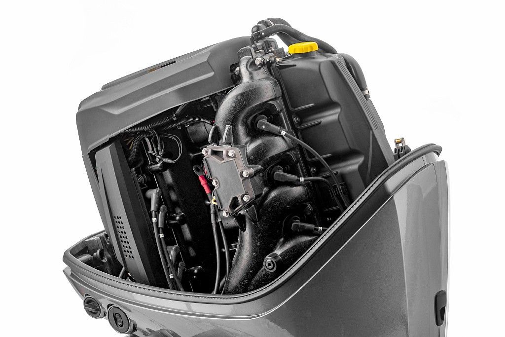 Мотор имеет разъем для подключения цифровых приборов контроля, управления двигателем и лодочным мотором в целом: тахометра, счетчика моточасов, тримметра, спидометра, индикатора расхода и запаса топлива.