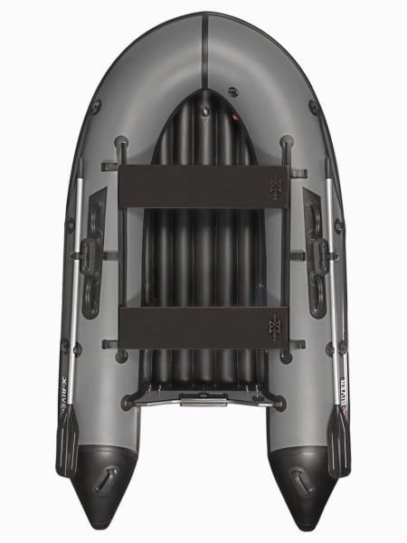 Лодка комплектуется надувным дном низкого давления, которое обеспечивает жесткость корпуса лодки, повышая устойчивость на воде и улучшая управляемость. Кроме того, продольные перегородки выполняют роль дополнительных ребер жесткости: пол практически не уступает по прочности твердым вариантам.
