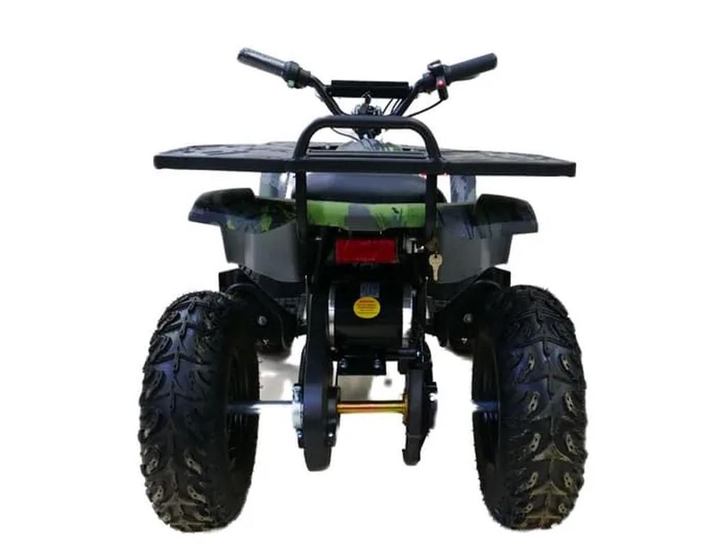 ATV Motax Mini Grizlik X-16 1000W — электрический детский квадроцикл с мощным электрическим двигателем 1000W и большим набором регулировок. Этот квадроцикл подойдёт для детей в возрасте от 3 до 8 лет. ATV Motax Mini Grizlik X-16 1000W оборудован 6-дюймовыми колёсами. Квадроцикл имеет богатую базовую комплектацию: он оборудован пультом дистанционной остановки и запуска двигателя, ограничителем скорости с тремя режимами (5, 15, 30 км/ч), информативным индикатором остаточного заряда батарей, расположенным на правой рукоятке, переключателем направления движения, кнопкой быстрой остановки двигателя, яркими передними светодиодными фарами с режимом ближнего и дальнего света. Удобный пластиковый бокс с аккумуляторами можно легко снять и отнести в квартиру или гараж для заряда аккумуляторных батарей. Простота управления обусловлена фирменной передней подвеской полузависимого типа, которая позволяет сохранить стабильность в движении и лёгкость рулевого управления, что немаловажно для любого ребёнка! Передние и задние механические дисковые тормоза способны эффективно остановить лёгкий и маневренный квадроцикл. Квадроцикл оборудован передним и задним багажниками и прочным передним бампером. Эта модель отлично подойдёт как для получения первого опыта вождения, так и для активной езды по дачным дорожкам и лесопарковым зонам. Отсутствие шума выхлопа, дыма, наличия бензина и масла, делает этот квадроцикл невидимкой в городских парках и скверах! Компактные размеры и отсутствие запахов горючего позволяют перевозить его в багажнике легкового автомобиля.