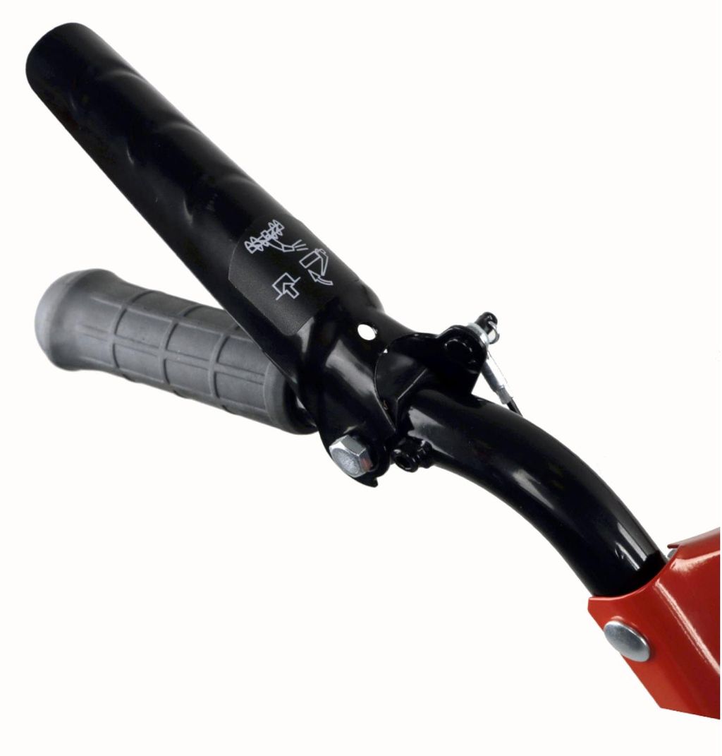 - Ручной стартер. Используется для запуска двигателя и находится в удобном и доступном месте на задней части снегоуборщика в виде рычага.