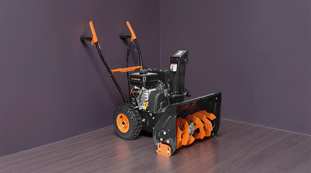 • Ручной стартер. Используется для запуска двигателя и находится в удобном и доступном месте на задней части снегоуборщика в виде рычага.