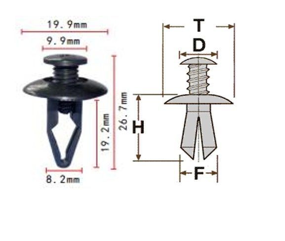 Клипса T-0006 (KJ-1050) автомобильная с резьбовым штырьком, 25шт.