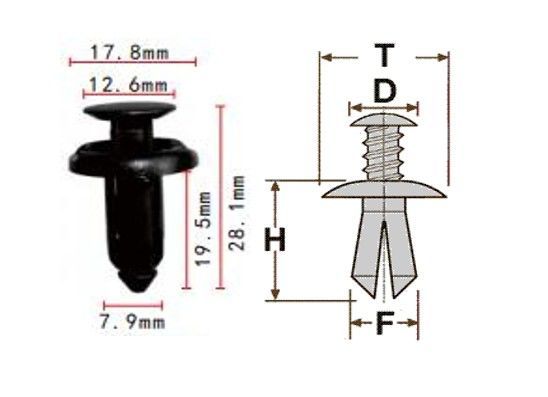 Клипса T-0037 автомобильная с резьбовым штырьком, 25шт.
