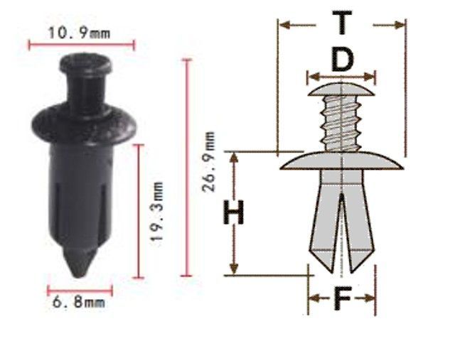 Клипса T-1001 (KJ-204e) автомобильная с нажимным штырьком, 25шт.