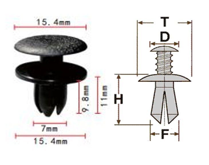 Клипса T-0021 автомобильная с резьбовым штырьком, 25шт.