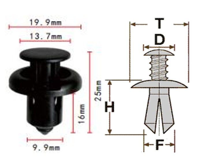 Клипса T-0006 (KJ-1050) автомобильная с резьбовым штырьком, 25шт.