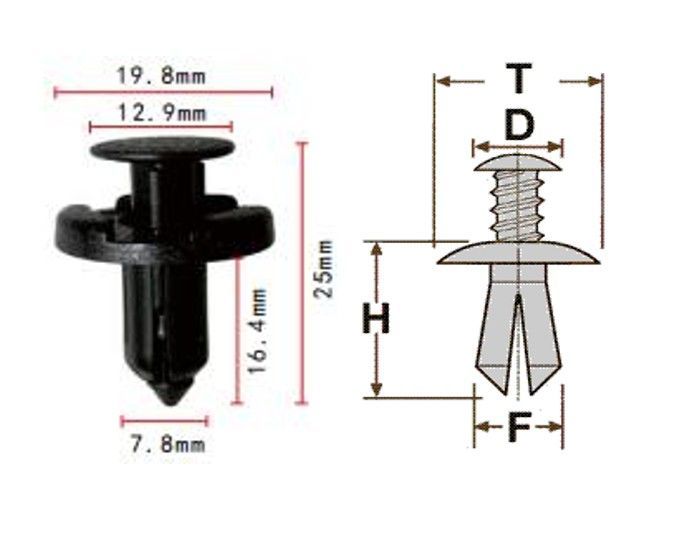 Клипса T-0021 автомобильная с резьбовым штырьком, 25шт.