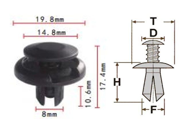 Клипса T-0018 автомобильная с резьбовым штырьком, 25шт.