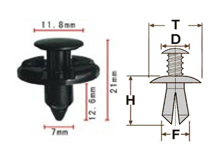 Клипса T-0021 автомобильная с резьбовым штырьком, 25шт.