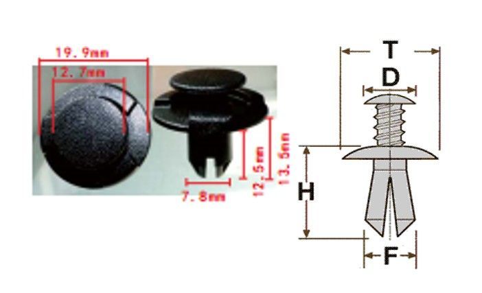 Клипса T-0018 автомобильная с резьбовым штырьком, 25шт.