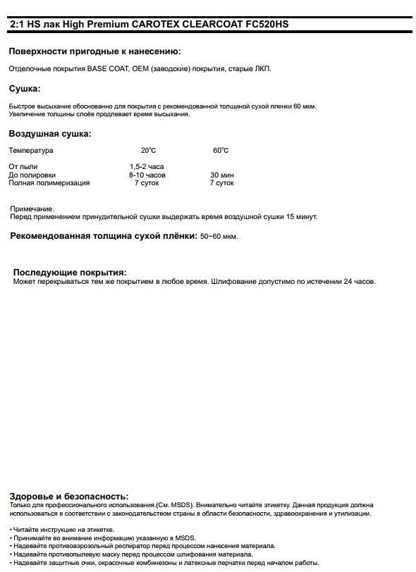 CAROTEX Лак HS 2:1 премиум FC 520HS 1л + отверд. (FCH449M) 0.5 л