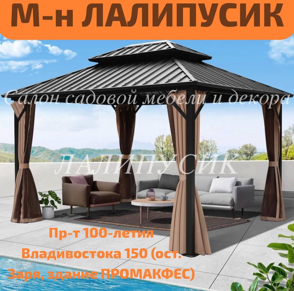 Садовый шатер 3х3х2,7 м крыша изготовлена из тонированного алюминия