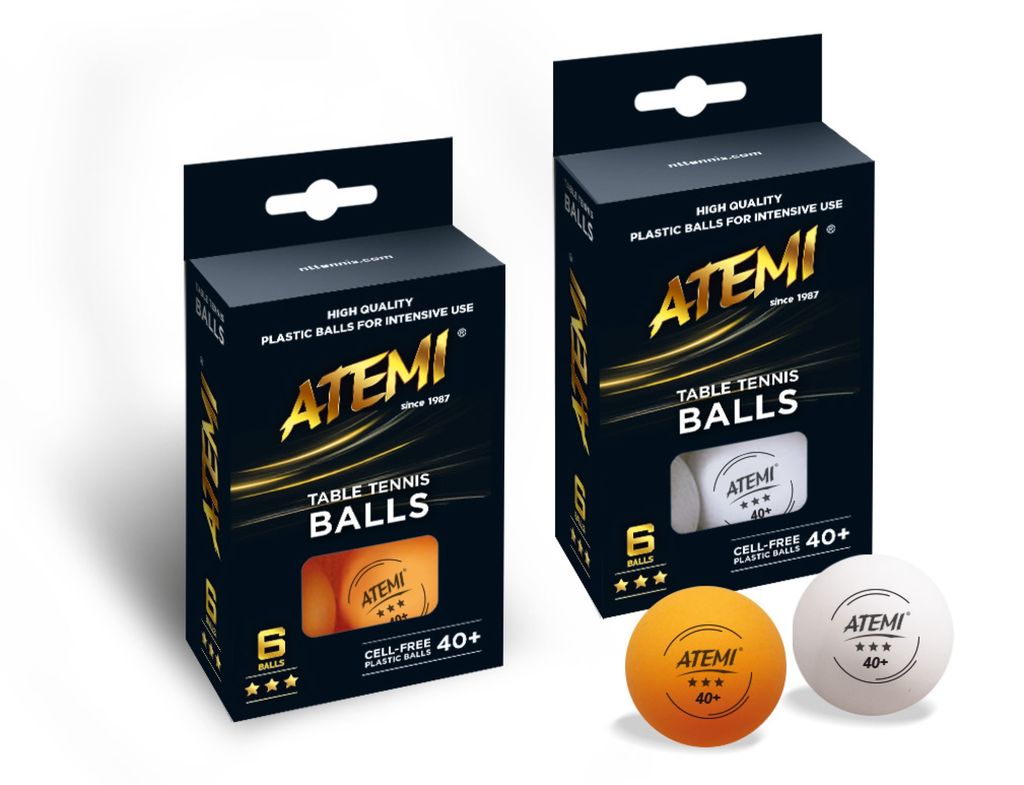 Мячи для настольного тенниса Atemi 3* белые, 6 шт.