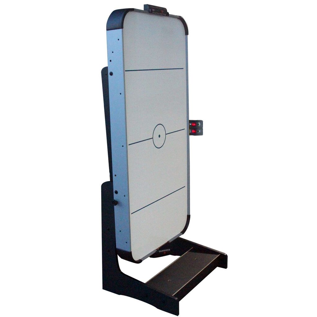 Стол оборудован электронным табло для подсчета очков. Питание счетчика: 2 батарейки, типа ААА. Складная конструкция позволит экономить место в перерывах между играми. Корпус выполнен из специально обработанного МДФ, сверху покрытого прочным пластиком. Мощный компрессор подает воздух через отверстия. Напряжение: 220В.