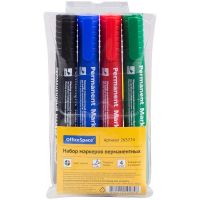 Набор маркеров перманентных OfficeSpace "8004", 4цв., пулевидный, 2мм, чехол с европодвесом