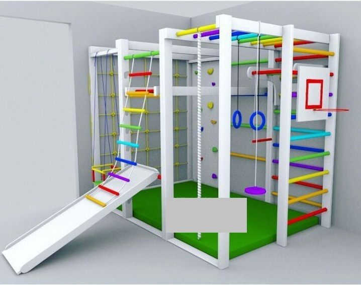 Качели, канат, кольца, трапеция, веревочная лестница, выносной турник, скалодром, горка