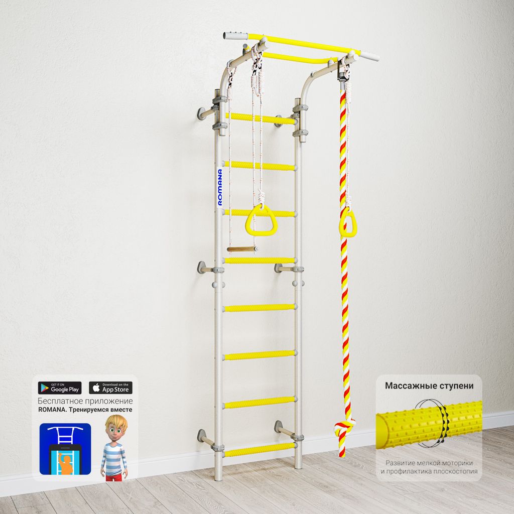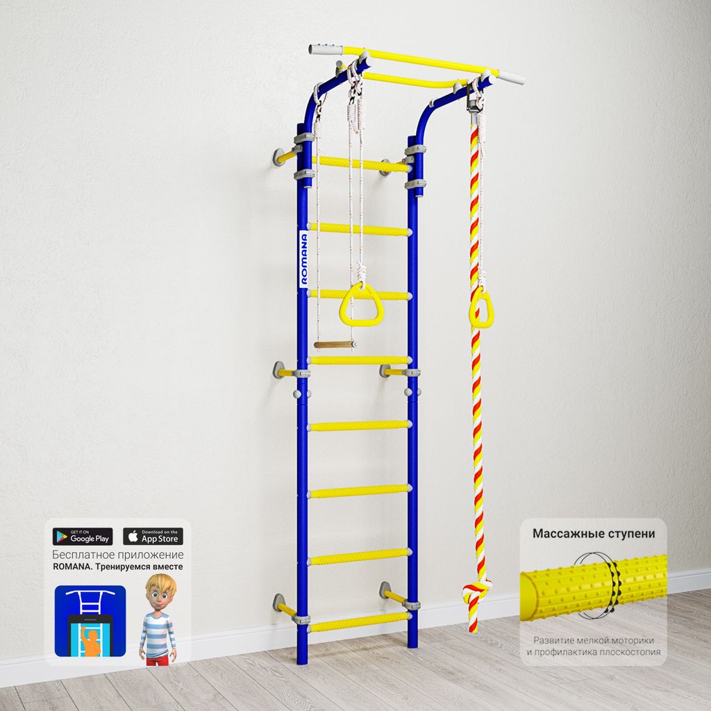 Шведская стенка с креплениями к стене Комета NEXT 1 - самый популярный домашний спортивный комплекс. Именно пристенная конструкция и полный комплект навесного оборудования при ширине шведской стенки 490 мм сделали модель хитом продаж. Турник, регулируемый по длине лестницы, позволяет делать упражнения на комфортной для пользователя высоте.