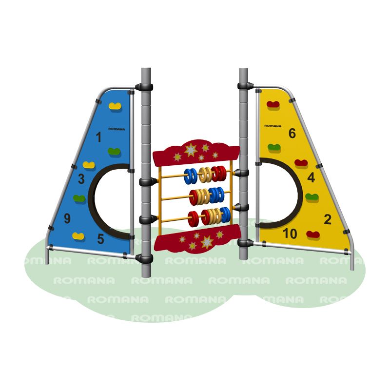 Панельный игровой комплекс– это яркие две треугольные панели-скалодромы с цифрами соединенные счетами. Развивает ловкость, мышцы, фантазию и помогает в обучении счету.