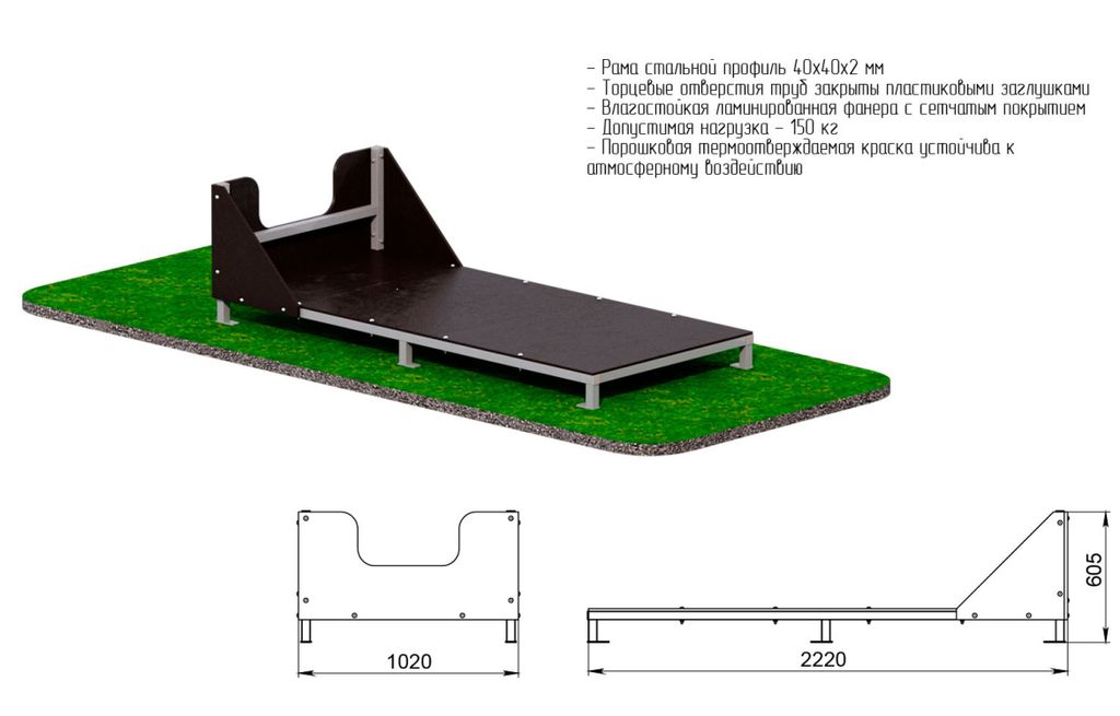 • Металлические элементы окрашены порошковой термоотверждаемой краской, устойчивой к атмосферным осадкам;