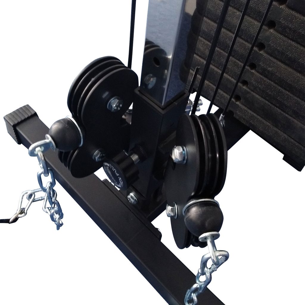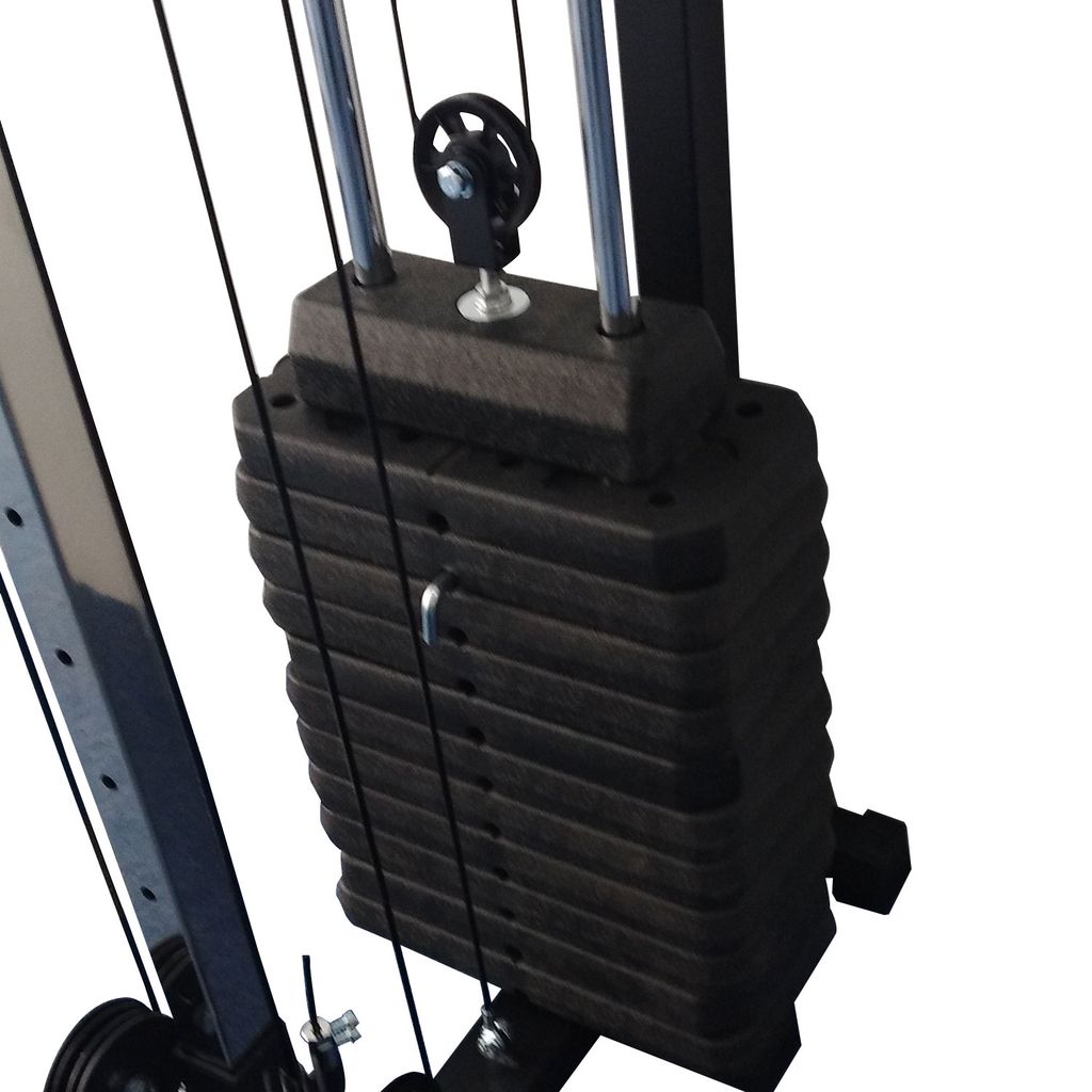 Многофункциональный силовой тренажер (кроссовер) со встроенным весовым стеком общей массой 66 кг.
