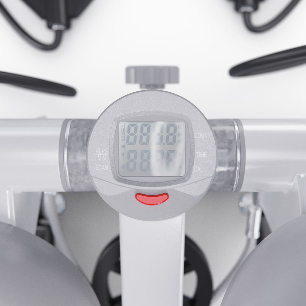 В комплекте с мини степпером идут съёмные эспандеры и инструменты для сборки и обслуживания. LCD дисплей степера показывает время, количество сожженных калорий, количество шагов, количество шагов в минуту и режим сканирования, делая ваши тренировки универсальными.