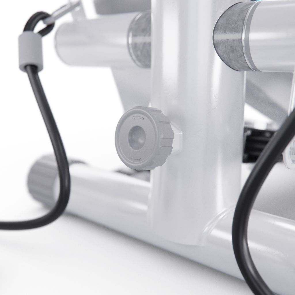 Педали степпера имеют размеры 31 х 12 см, а благодаря ручке на раме тренажёра вы можете регулировать высоту их подъёма от 8 до 30 см, выбирая оптимальный уровень нагрузки. Чем выше поднимаются педали, тем больше усилий вам нужно прилагать, и наоборот.