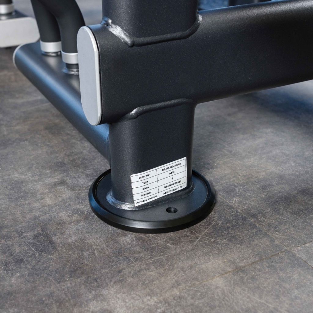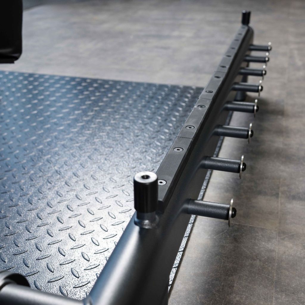 • Два хромированных накопителя длиной 170 мм, диаметром 50 мм для хранения свободных весов изготовлены из толстостенной стальной трубы. На торцах накопителей установлены заглушки из пластика.