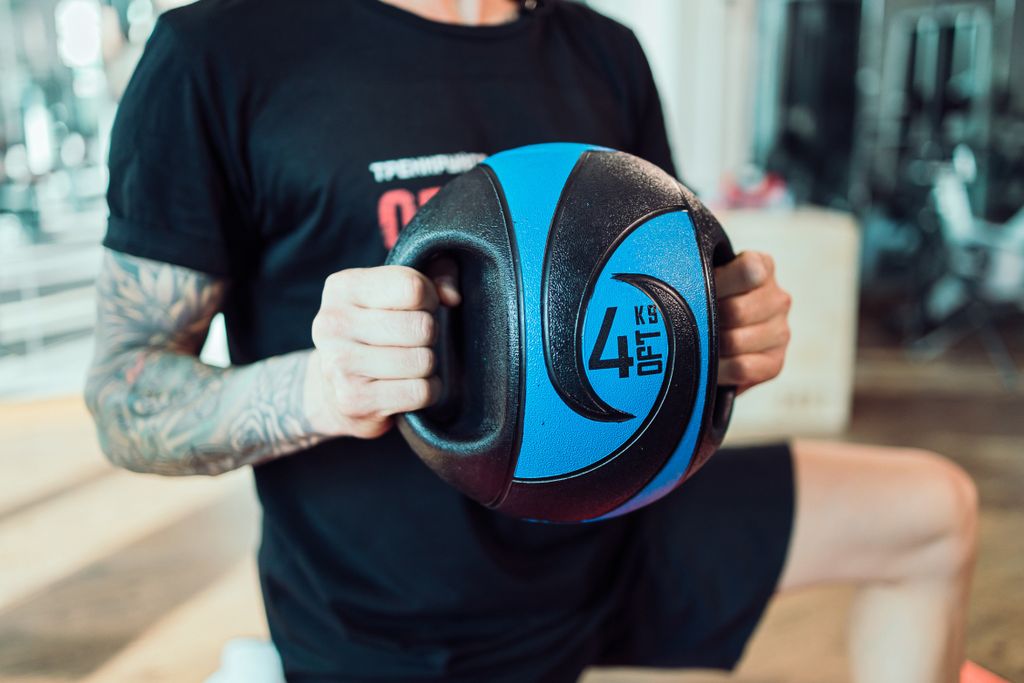 Мяч тренировочный (медицинбол) с хватами, 8 кг
