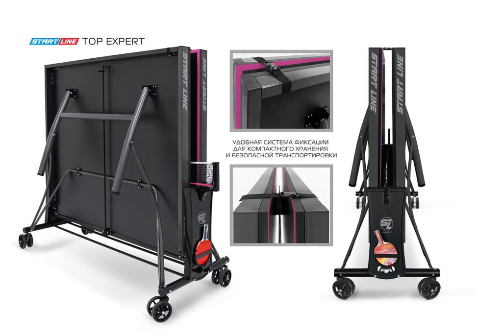 Модель TOP Expert Black укомплектована удобным держателем для ракеток и мячей с покрытием Soft-touch и встроенной сеткой, не требующей демонтажа при складывании. Начать игру можно в любое время, ведь все необходимое оборудование всегда под рукой.